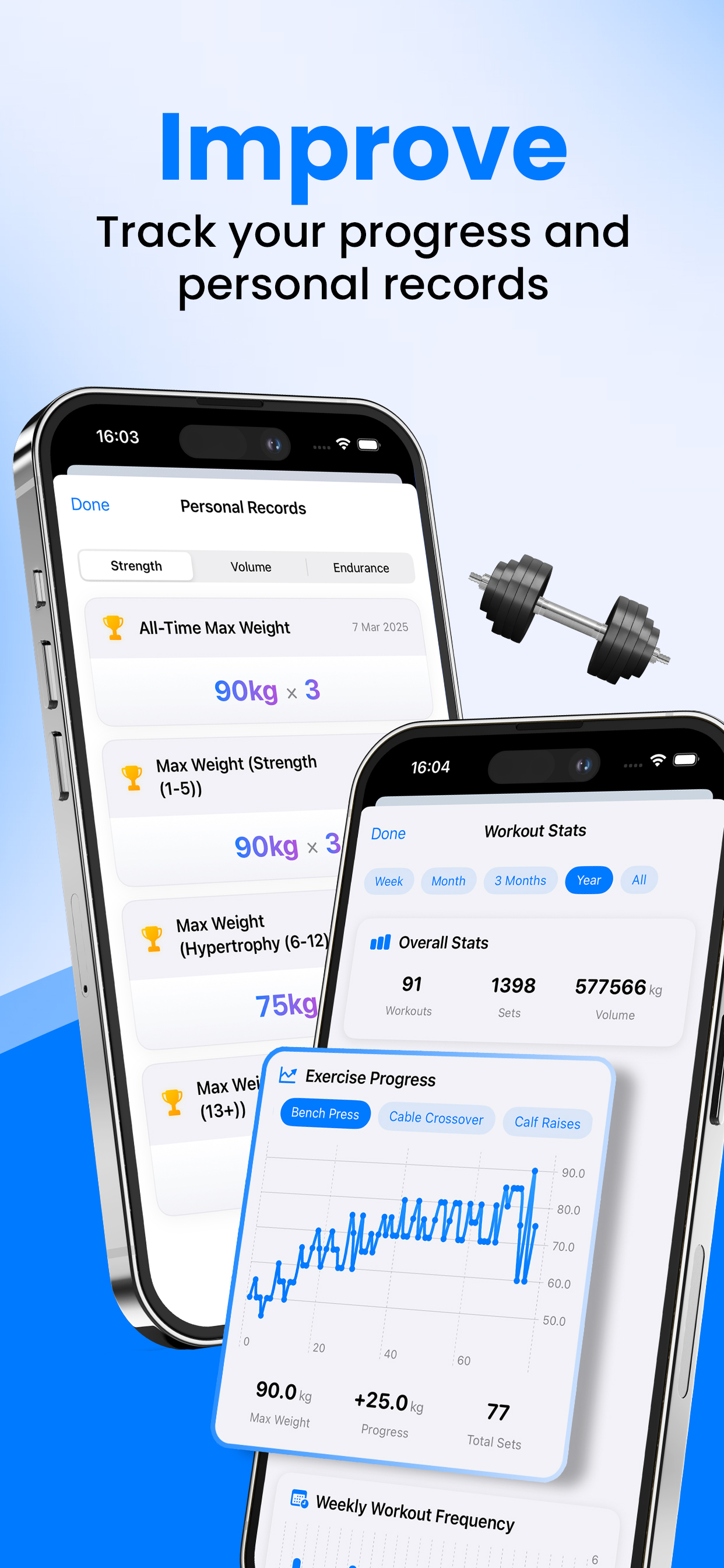 A straightforward strength training log with a clean interface, routines, Apple Watch support, and progress tracking.